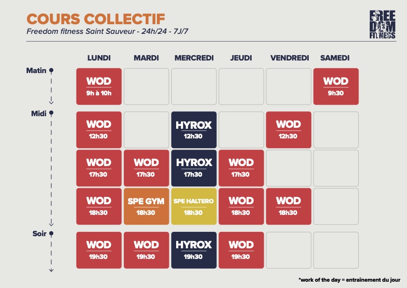 Notre club de Cross training de Saint Sauveur offre un environnement parfait pour atteindre vos objectifs sportifs. Avec des équipements de pointe, une variété d’exercice collectif axés sur le renforcement musculaire et tonicité, et une communauté sportive dynamique, vous aurez tout ce dont vous avez besoin pour vous remettre en forme. Profitez de notre ambiance motivante pour transformer votre physique et booster votre confiance.